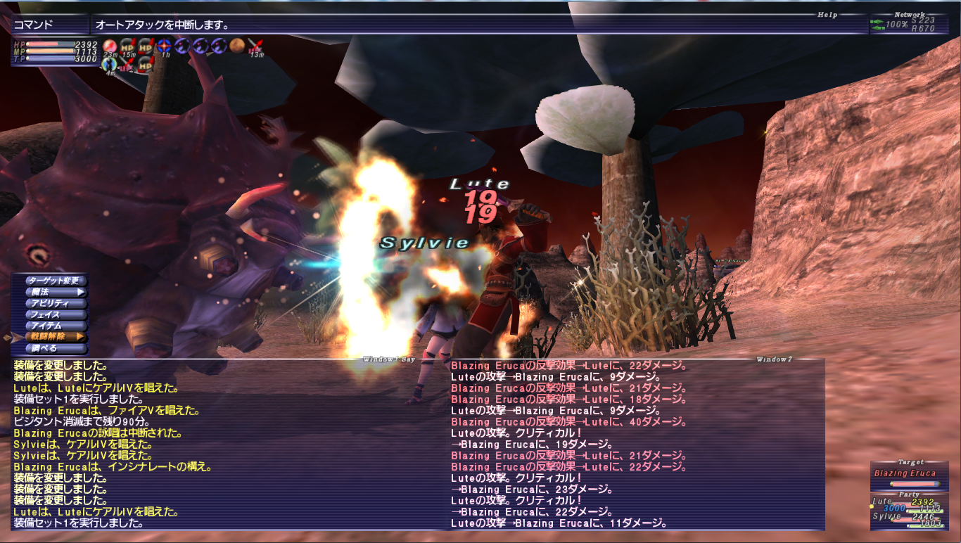 アビセアアットワのBlazing Eruca(常時ブレイズスパイク)の反撃ダメージからレジストデータを取ります。