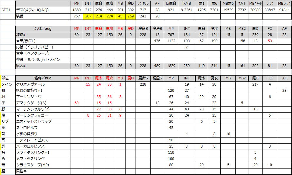デスMP重視。待機MPリフレ装備はまだなし、マターキャンペーン待ち。