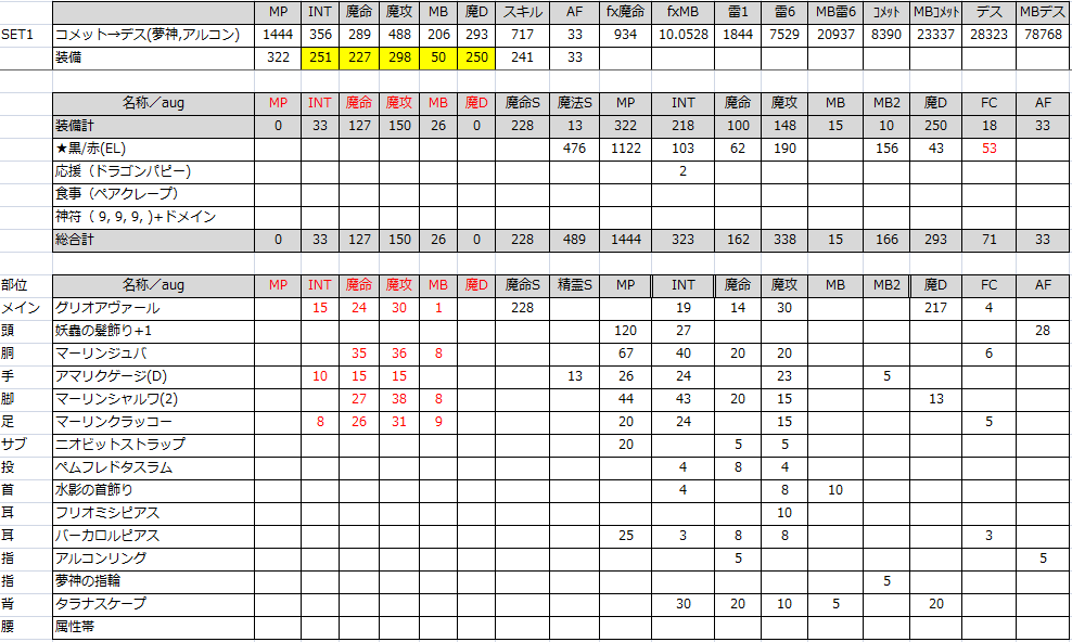 MP1444(装備INT251、魔命227、魔攻298、MB50、AF33)