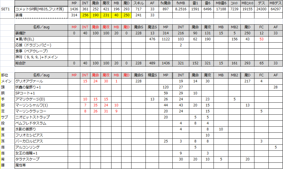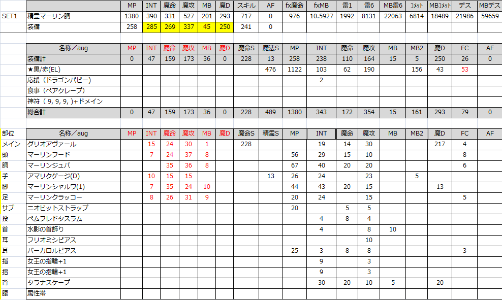 マーリン胴(装備INT285、魔命269、魔攻337、MB45、魔法D250)